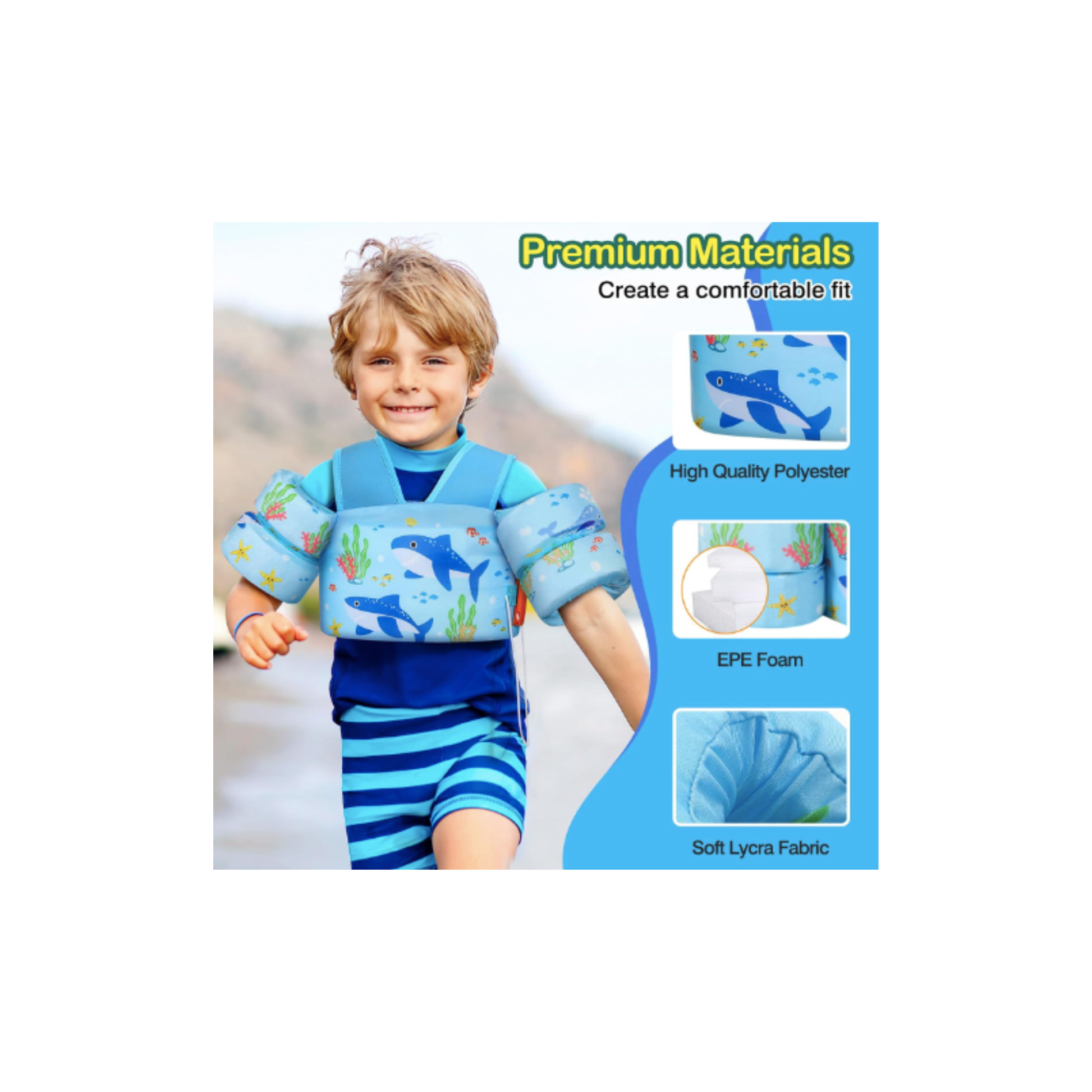 MoKo chaleco de natación para niños pequeños, con divertidos dibujos animados. Incluye alas de agua y correas ajustables para mayor seguridad y comodidad. Ideal para niños y niñas de 22 a 66 libras, perfecto para disfrutar el agua con confianza 🐠👶
