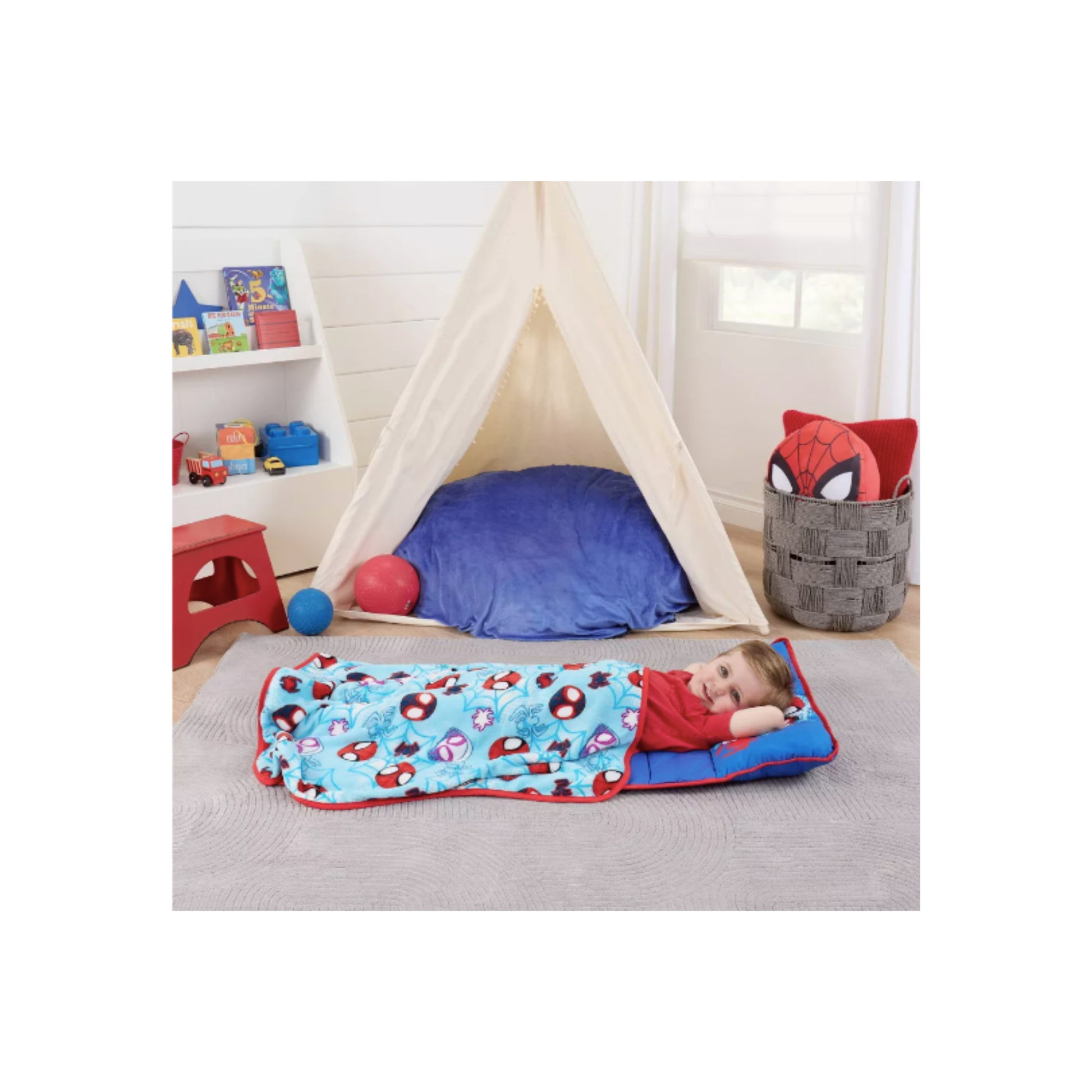 Haz que la siesta sea más divertida y acogedora con nuestro nap mat de Spidey and His Amazing Friends. Suave, ligero y fácil de llevar, es perfecto para el kinder, viajes o descansar en casa.