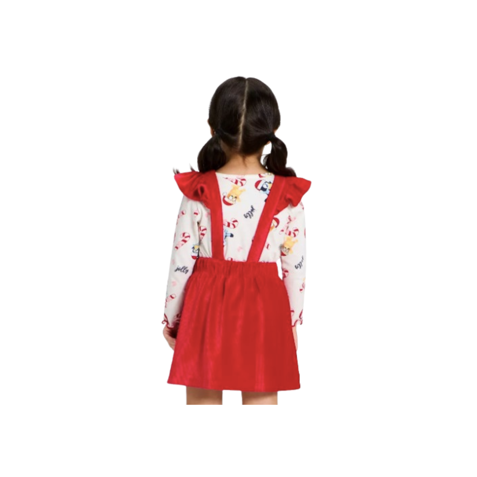 Conjunto de dos piezas: camiseta de manga larga + vestido combinando en tono rojo festivo.