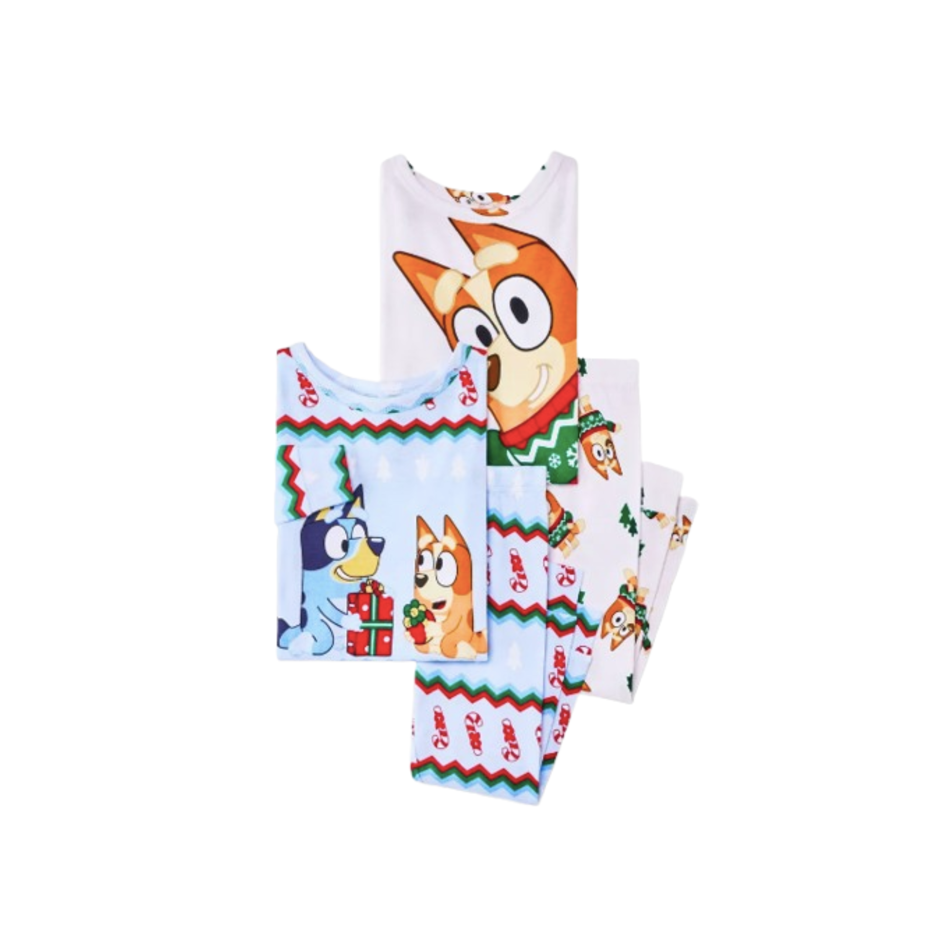 Pijama Navideño de 4 Piezas para Niños – Bluey (Algodón, Manga Larga) Cream/Blue