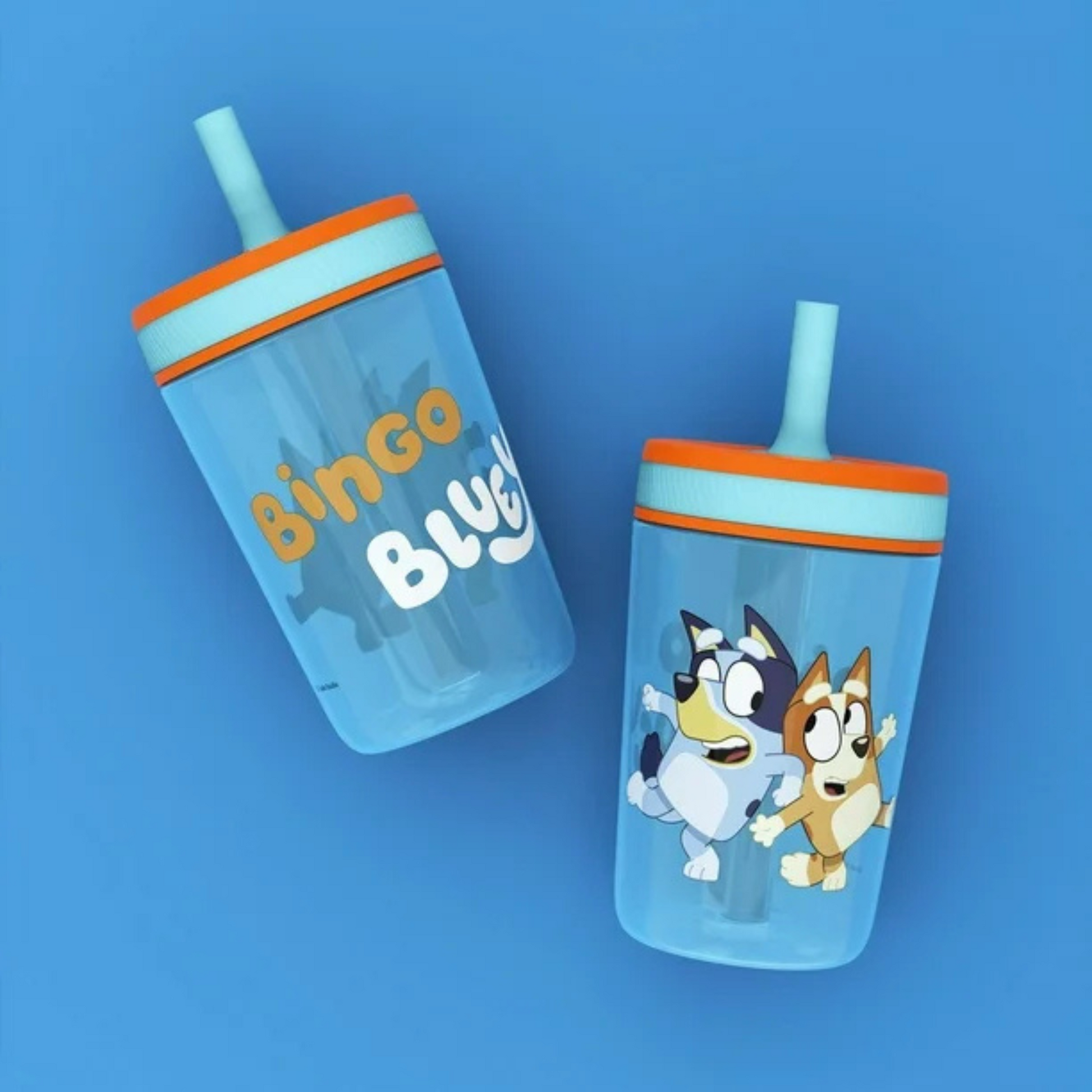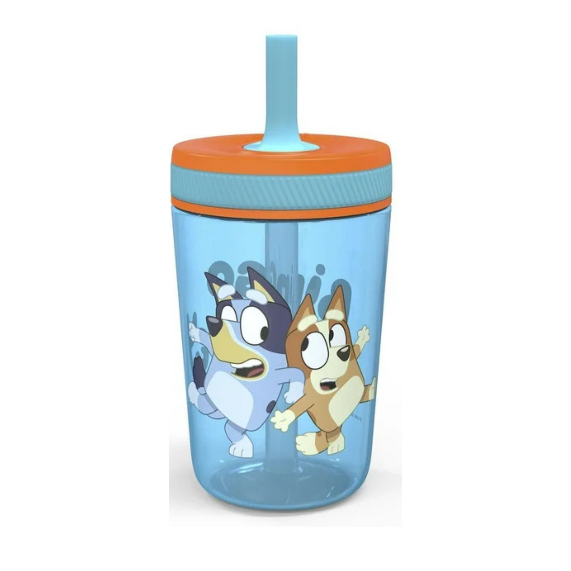 Vasotoma todo Bluey de 15 onzas de Zak Designs. Con cañita de silicona cómoda y a prueba de fugas. Hecho de plástico y silicona resistentes. Libre de BPA. Apto para lavavajillas, no apto para microondas.
