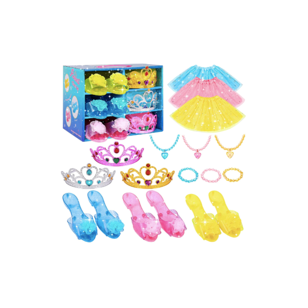 Incluye ropa de vestir y zapatos de princesa, ideal para juegos de imitación y disfraces. Perfecto para niñas de 3 a 6 años, fomenta la creatividad y la diversión en casa o en fiestas.